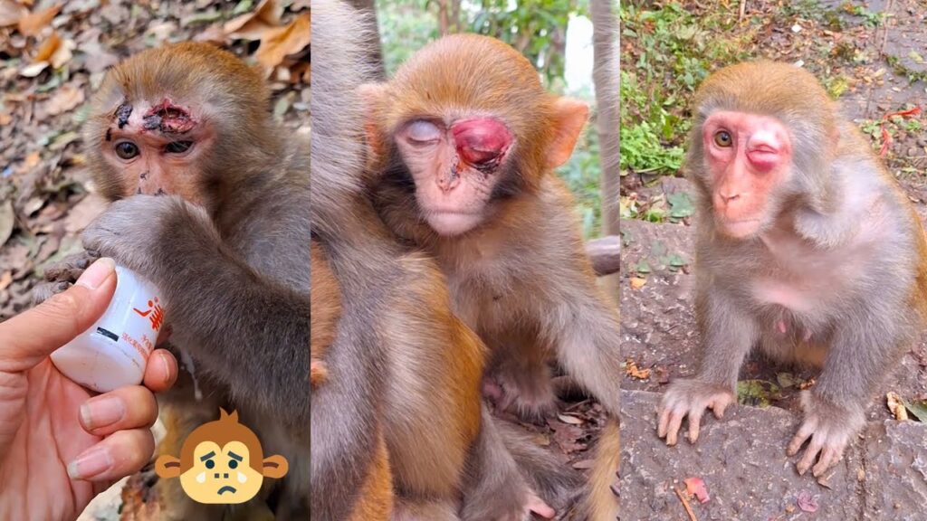 The smallest monkey—barely steady on its feet—sat quietly near the edge of the group. When a small piece of food was placed nearby, it paused for a moment, almost as if it could not believe its luck.