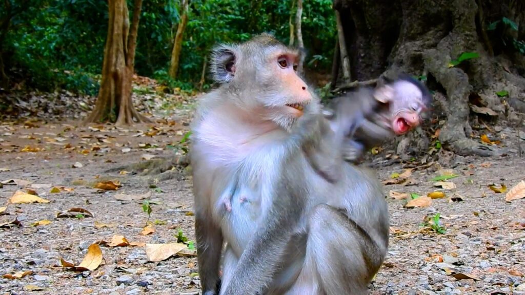 The morning air in the Angkor Wat forest carried a soft stillness, the kind that settles after a long night of rain. Leaves dripped slowly, one drop at a time, as the light filtered gently through the tall trees. It was in that quiet space that Amina sat—small, trembling, and unusually still.
