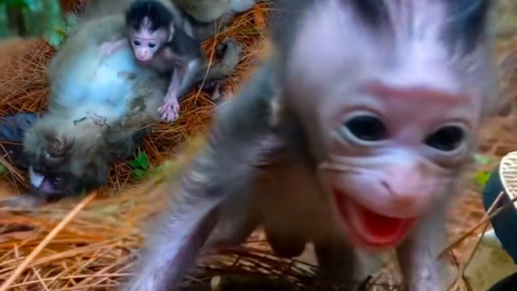 Deep in the canopy where the light barely reaches the ground, a small troop of monkeys moved quietly through their morning routine — foraging, calling to one another, climbing. And then, stillness. One young mother had stopped moving.