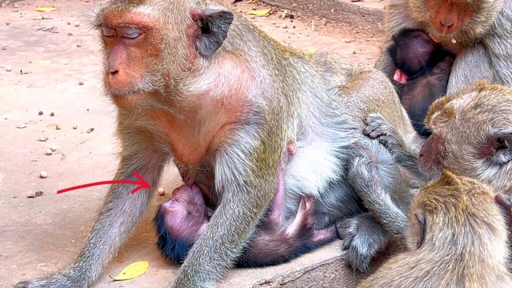 High above the roots and worn stone paths, a young mother monkey shifted carefully along a branch, her movements slower than usual. Cradled close to her chest was her baby—small, alert, and full of quiet curiosity. The forest around them hummed with life, yet in that moment, everything felt still.