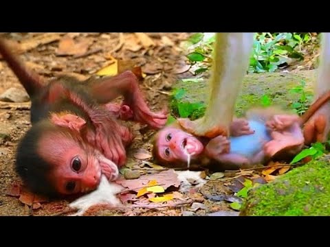 The morning light moved gently through the tall trees of the Angkor forest, touching the roots and stones with a quiet warmth. Beneath a wide banyan tree, a small baby monkey named Leo sat alone.