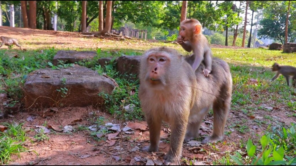 Boris rested his hand against hers, his body leaning gently into her side. His eyes, still wide with curiosity, softened. Around them, the distant rustle of leaves and faint calls of other monkeys continued, but here, in this small space, everything felt still.