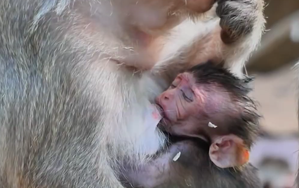 The baby hesitated, then reached forward, instinctively pressing close to her side. For a moment, he seemed to expect the familiar comfort. But she shifted away, already focused on foraging.