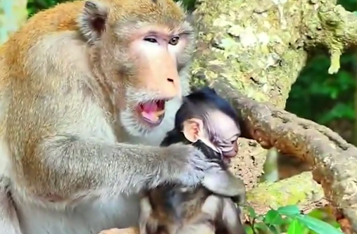 At first, it seemed like play. An older male brushed past him with a quick, impatient motion. The baby hesitated, unsure, then tried again—this time reaching out, as if asking to be included. The response was brief. Dismissive, but not violent. Just enough to make him pause.