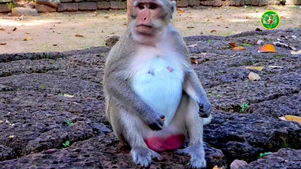 In the heart of Cambodia’s lush Angkor Wat forest, the morning sun filters softly through towering trees, casting a warm glow on the forest floor. Today, Monkey Jazzy seems to have found a perfect little slice of tranquility. Sitting on a low branch, Jazzy nibbles slowly on a handful of fresh fruit, completely absorbed in the simplicity of the moment.