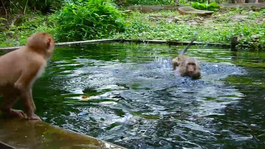 A baby monkey sat low on a mossy root, its tiny hands gripping the bark as if the forest itself were something to hold onto. The mother was nearby, but not close—watching, allowing space. It wasn’t abandonment; it was trust. The kind that grows quietly in nature, where learning happens through distance as much as closeness.
