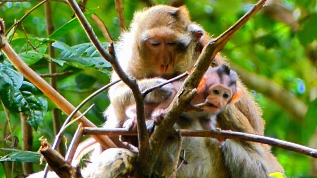 The forest around Angkor Wat wakes slowly. Morning light filters through towering trees, brushing the ancient stones with a soft, golden calm. On this particular morning, the stillness was broken by a small, uncertain sound—a baby monkey calling out, not loudly, but with a gentle persistence that carried through the roots and ruins.