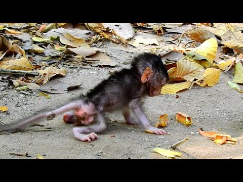 A baby monkey stepped out from behind a root, placing one tiny foot forward with unusual care. His steps were slow, uneven, almost hesitant. Each movement looked like it required more effort than it should.