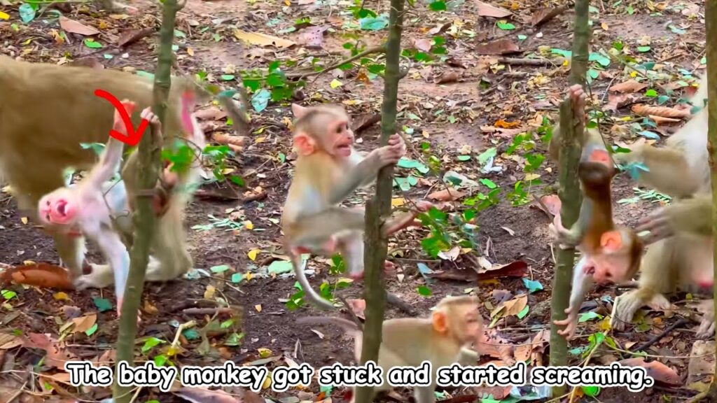High above one of the lower trees, a young baby monkey had been trying to follow the older members of the troop. Like many curious little ones, he wanted to climb higher than he probably should have. One quick step onto a narrow branch changed everything.