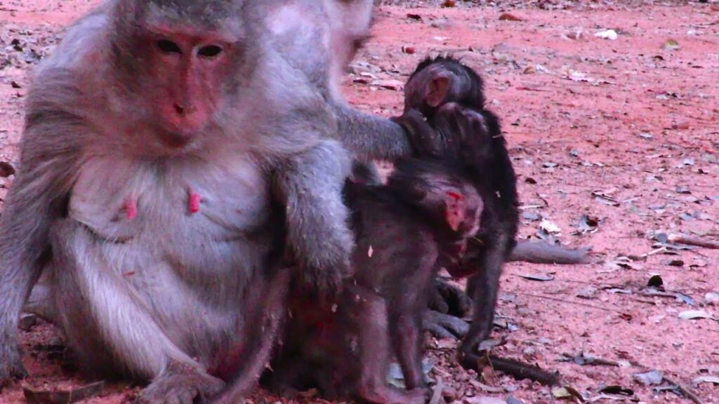 On a low stone ledge, worn smooth by centuries of rain and roots, two baby monkeys sat close together. They were still young enough that their movements felt slightly unsure—quick glances, tiny hands testing balance, soft pauses between bites. Between them lay a simple piece of food, nothing special by human standards, yet clearly important in that moment.