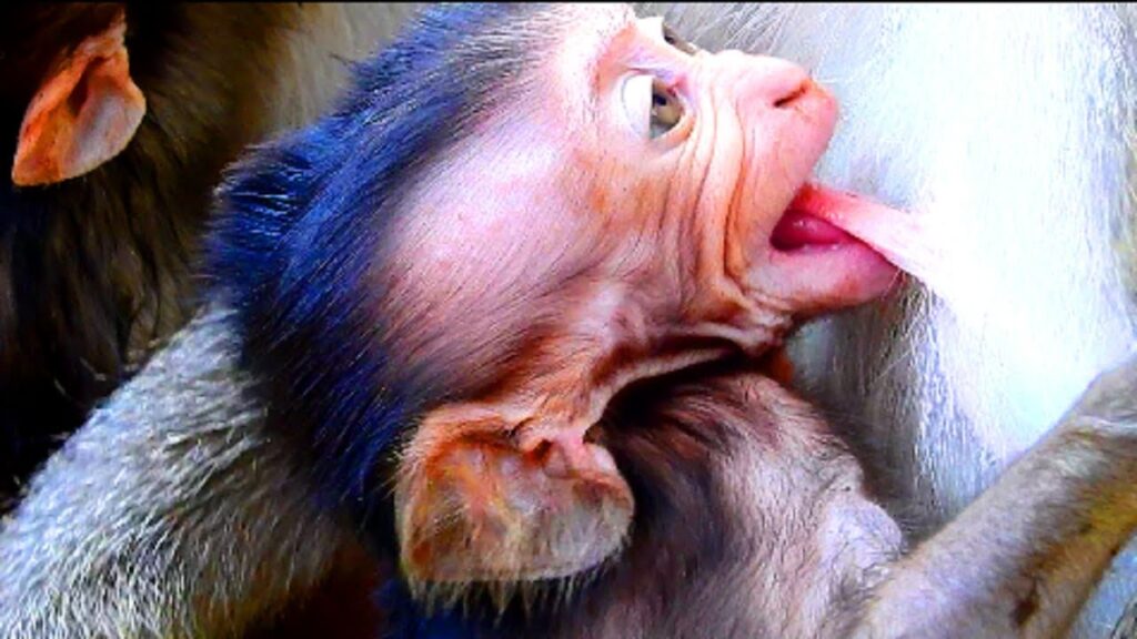 His mother sat quietly beneath the towering roots, cradling the newborn against her chest. The infant was impossibly small, eyes barely open, fingers curling into her fur. And the older baby stood a few feet away, staring.