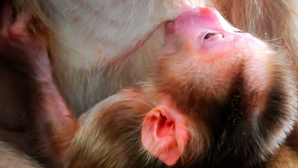 The sun had just begun to filter through the dense foliage of Angkor Wat, painting the forest floor in golden streaks. In a quiet corner, hidden from the usual chatter of the troop, Mom Libby cradled her newborn with unmatched tenderness. The tiny monkey, no bigger than a handful of leaves, clung instinctively to her chest, seeking warmth and comfort in the first moments of life.