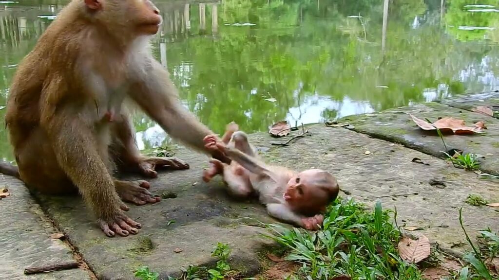 The shallow forest pool shimmered beneath ancient tree roots, and while the older monkeys moved confidently along the edges, the baby lingered longer than anyone expected. He splashed. He practiced. He paddled in circles with determined focus. Every movement felt like a small victory.