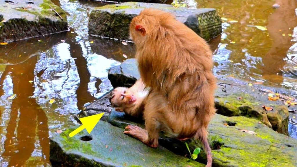 Morning light filtered softly through the tall trees, touching the mossy stones and warming the ground where Mama Linda sat calmly. Lumi, small and unsteady, pressed close, her movements slow and hopeful. She knew what she wanted. She always did.