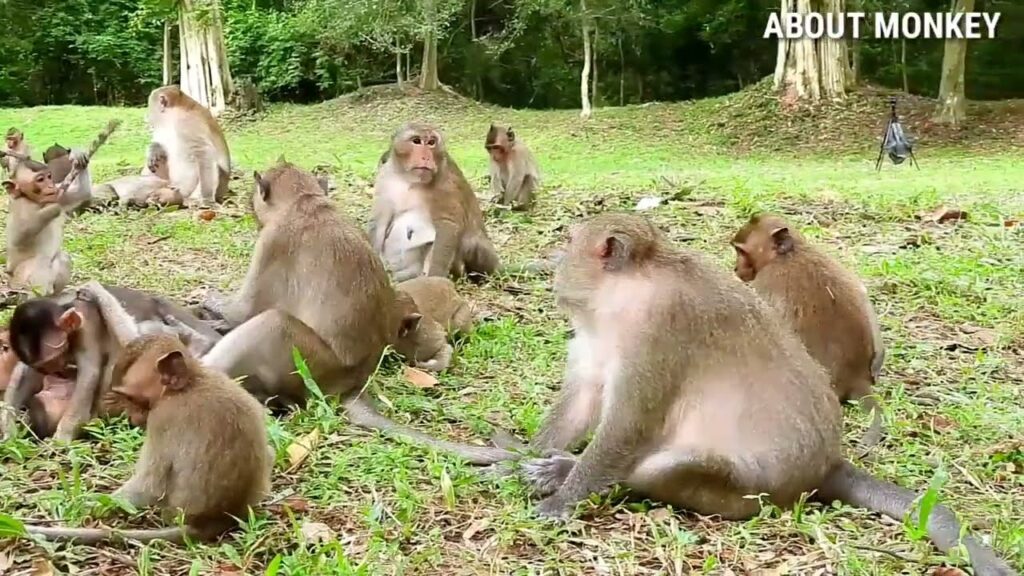 At the center of the group sat a young monkey, small in size but fully at ease. He leaned close to an older female, his tiny fingers resting against her fur as if he already understood that this was where he belonged. Around them, other members of the troop moved quietly—some grooming, others foraging, a few simply watching the forest breathe.