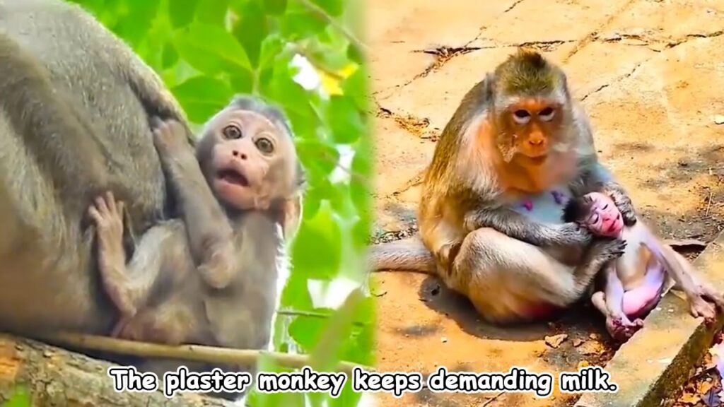 At first, she responded with tender patience, wrapping him in her protective arms. But as minutes turned into a half-hour, Plaster Monkey’s demands grew louder, his tiny hands reaching and pulling. His mother’s eyes, filled with love yet tinged with weariness, signaled her limits. She nudged him gently, shifting away, trying to teach the lesson that sometimes, patience and boundaries matter as much as comfort.