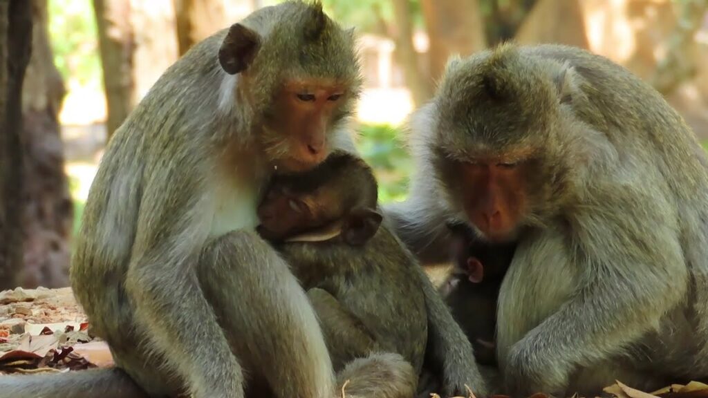 A group of baby monkeys sat close together, their movements unhurried, their energy soft. Some leaned into their mothers’ sides. Others explored only a step or two away before returning, as if guided by an invisible thread of comfort. Nothing dramatic happened — and that was exactly what made the moment so powerful.