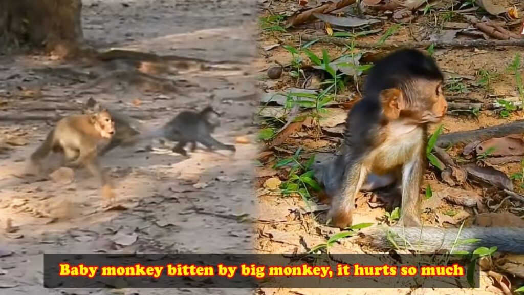 A few curious monkeys approached, circling the little one with quick steps and playful—but slightly rough—energy. For them, it was a moment of exploration, the kind of social testing young monkeys often do within the troop.