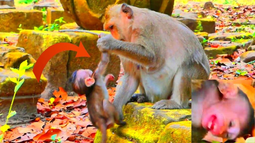 A baby monkey sat close to his mother, his tiny fingers wrapped tightly into the fur along her side. At first glance, it looked like an ordinary moment—just another young monkey staying close as the troop stirred awake.