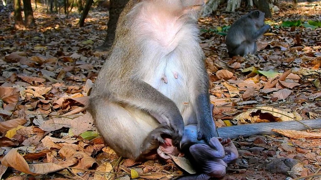 The forest was already awake when Anna settled onto the stone ledge, her body still and alert. Morning light filtered through the tall trees near Angkor Wat, laying soft patterns across the ground. Beside her, little Amina shifted restlessly, curious hands reaching for everything within sight.