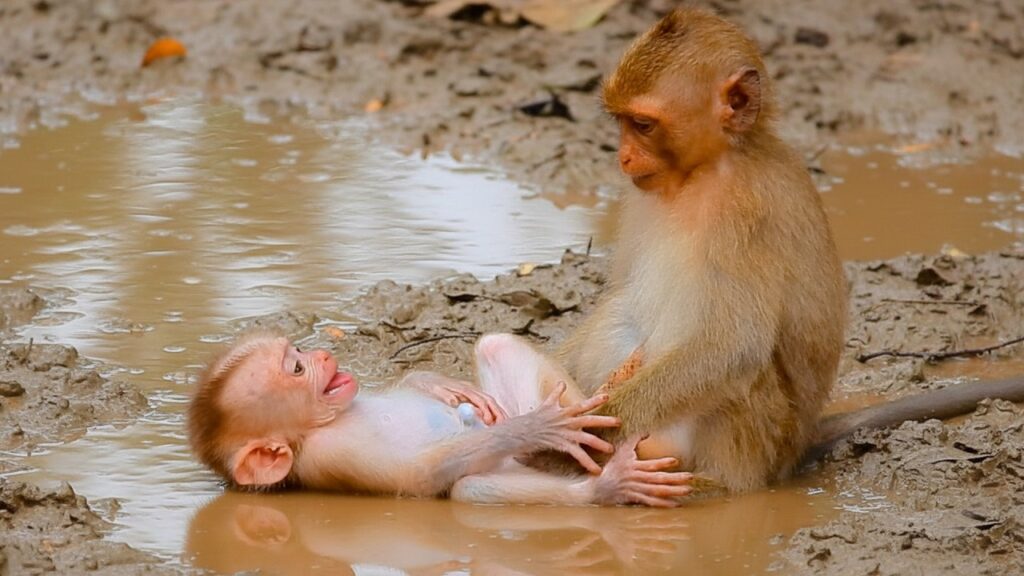 The morning light filtered gently through the tall trees near Angkor Wat, settling quietly on the forest floor. It was the kind of calm that feels almost intentional, as if the jungle itself was taking a breath. Beneath a low branch, a tiny baby monkey sat alone, small hands wrapped around himself, eyes scanning the space where his mother had last been.